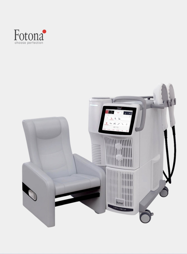 Dynamis® Max från Fotona är ett avancerat lasersystem som även används för kroppsskulptering. Kombinationen av Er:YAG och Nd:YAG stimulerar kollagen, stramar upp huden och förbättrar elasticiteten – helt utan kirurgi.
